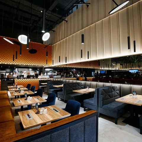 В основе интерьера ресторана Gan Bei (Ган Бей) лежат индивидуальность и утонченность. Здесь учтены современные дизайнерские решения, сохранившие концепцию заведения и неповторимую черту сети ресторанов. Приятные цвета в отделке, подвесные лампы, удобная мебель и экзотические растения вкупе создают уют и гармонию, впечатляя гостей.
